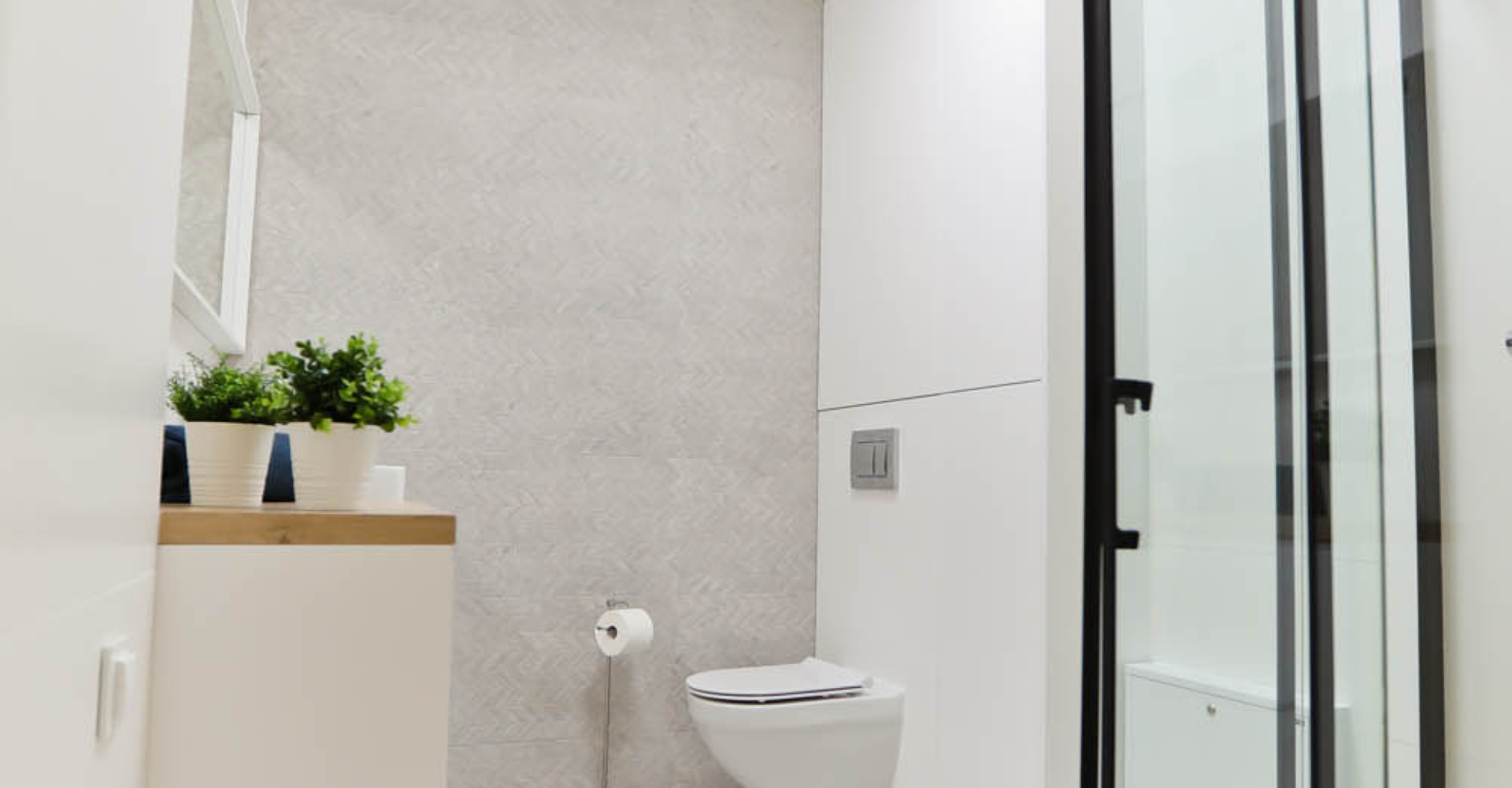 Łazienka – kabina prysznicowa, umywalka, wc, pralka