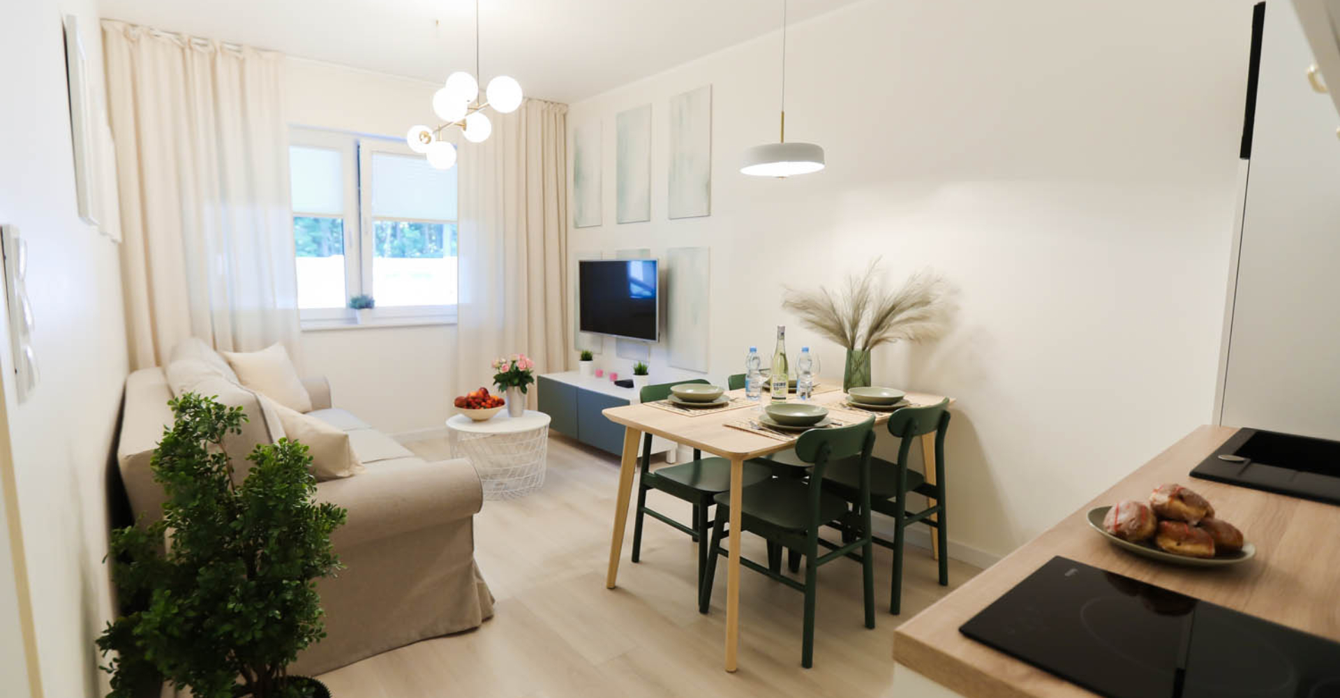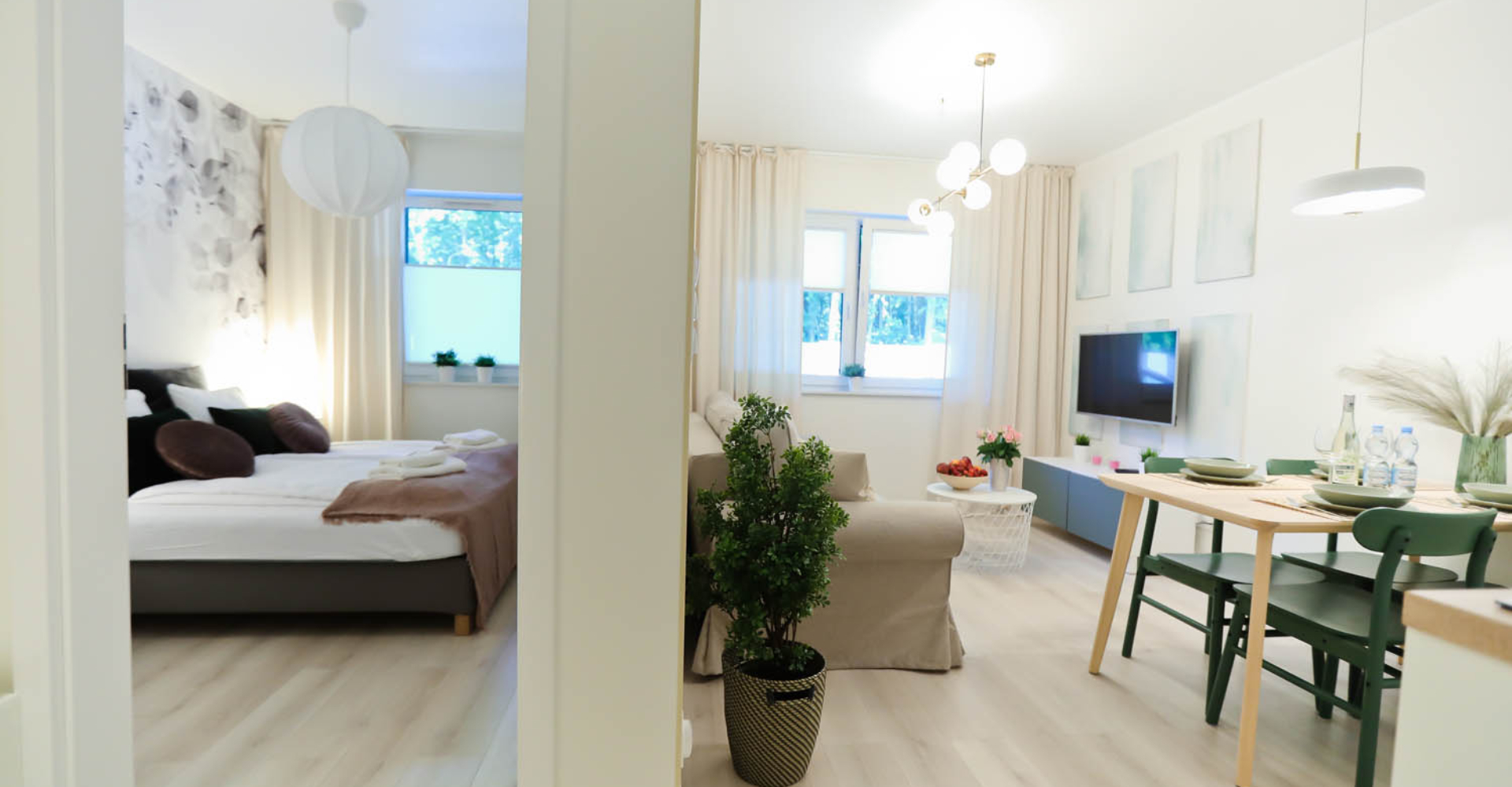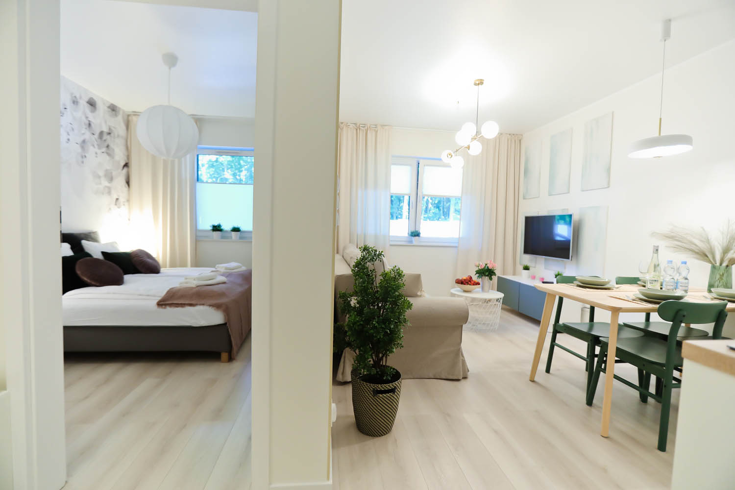 Sypialnia, salon z aneksem kuchennym, łazienka