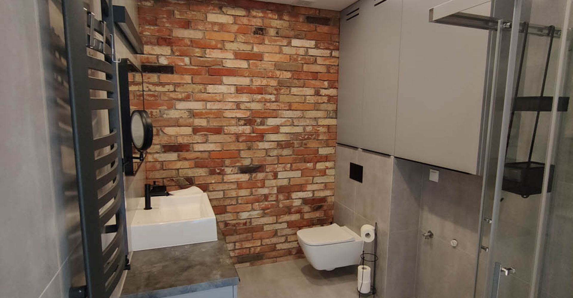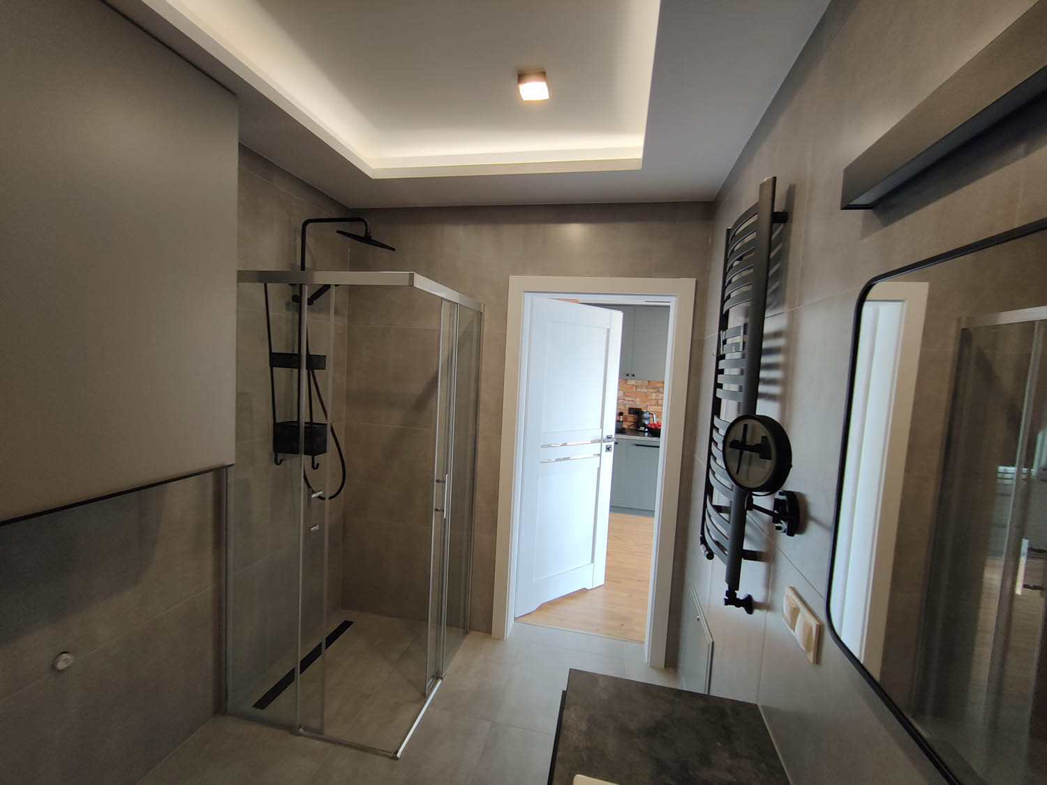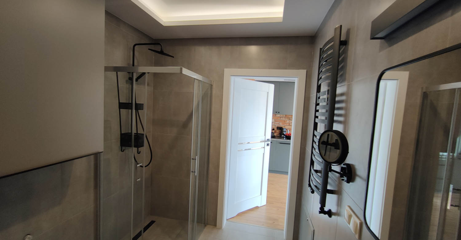 Łazienka – kabina prysznicowa, umywalka, WC, pralka
