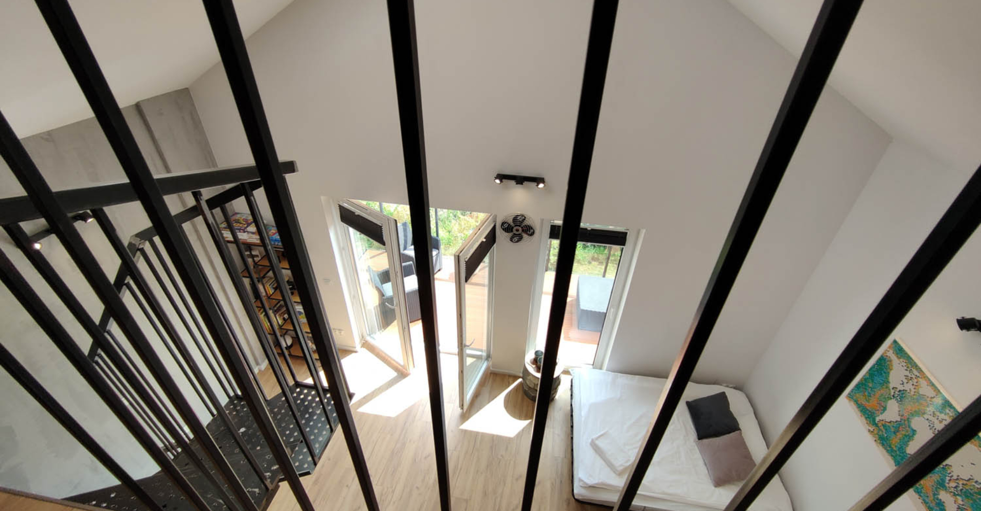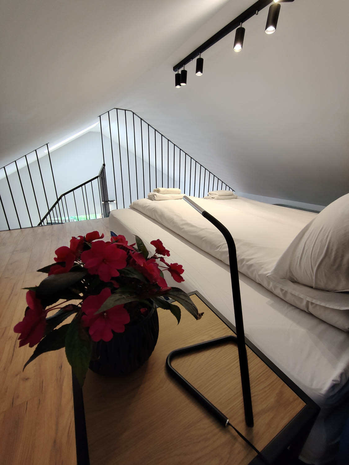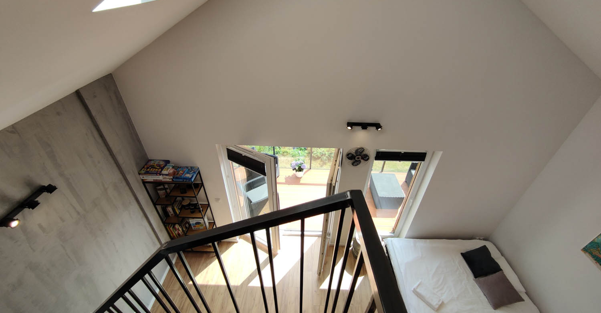 Sypialnia z antresolą część otwarta – Łóżko małżeńskie 140 cm x 200 cm, łóżka 140 cm x 200 cm,