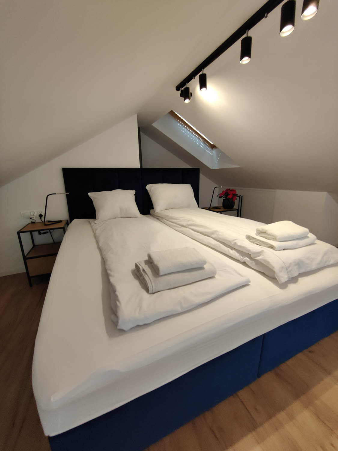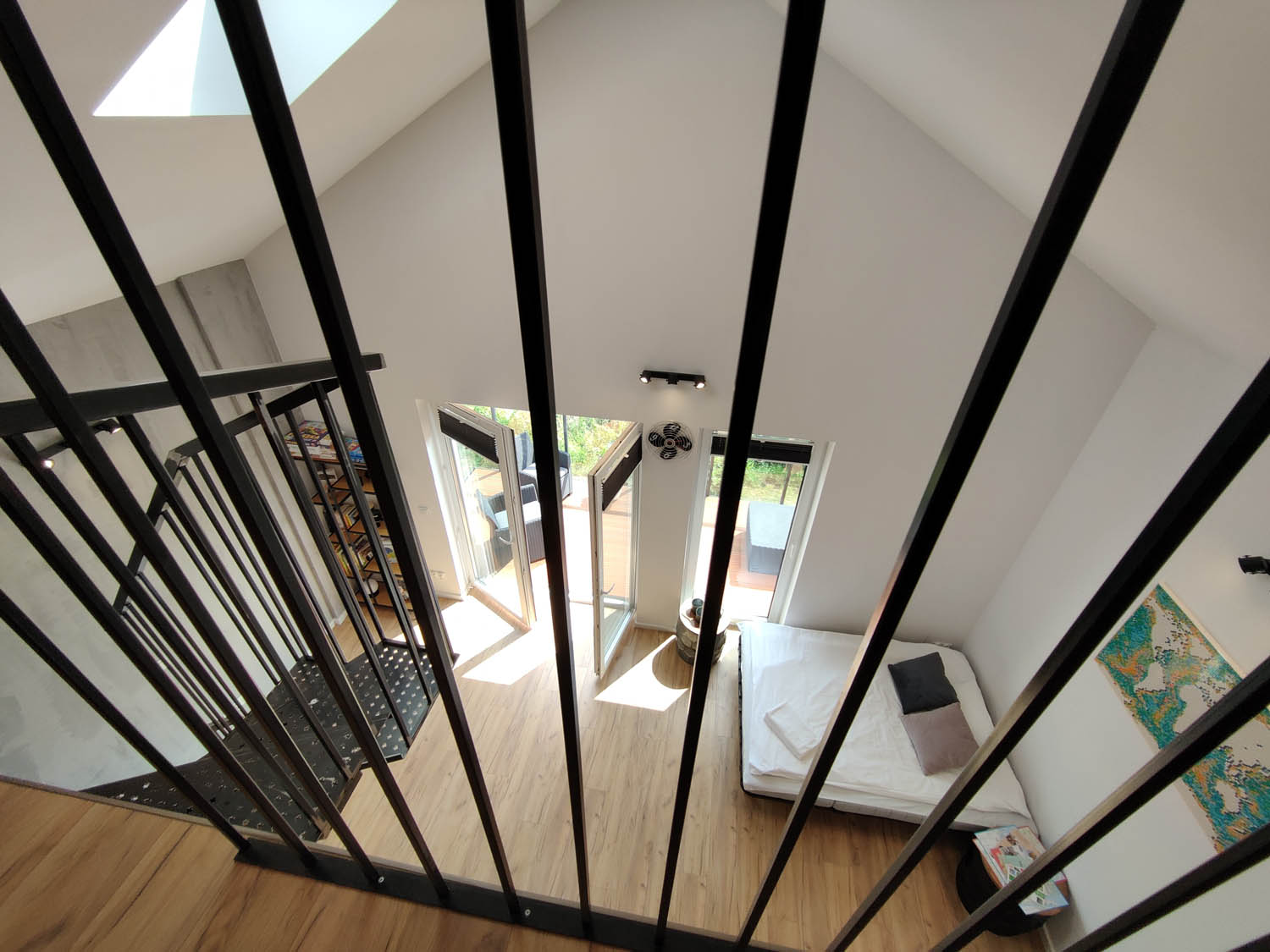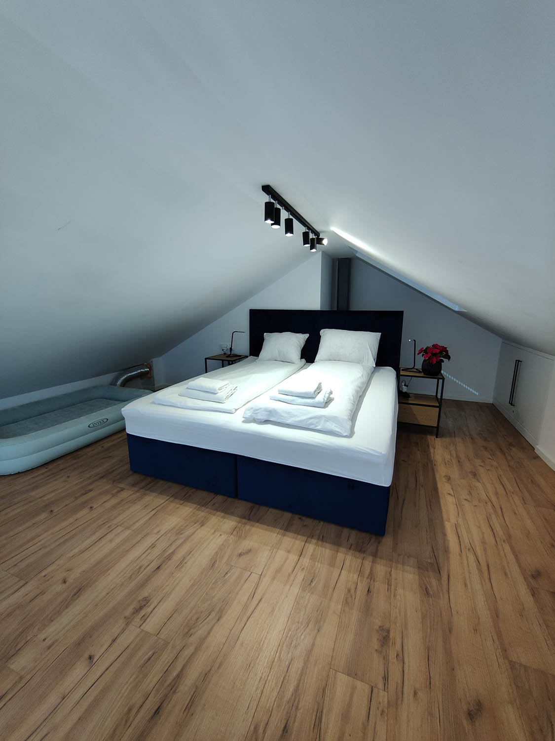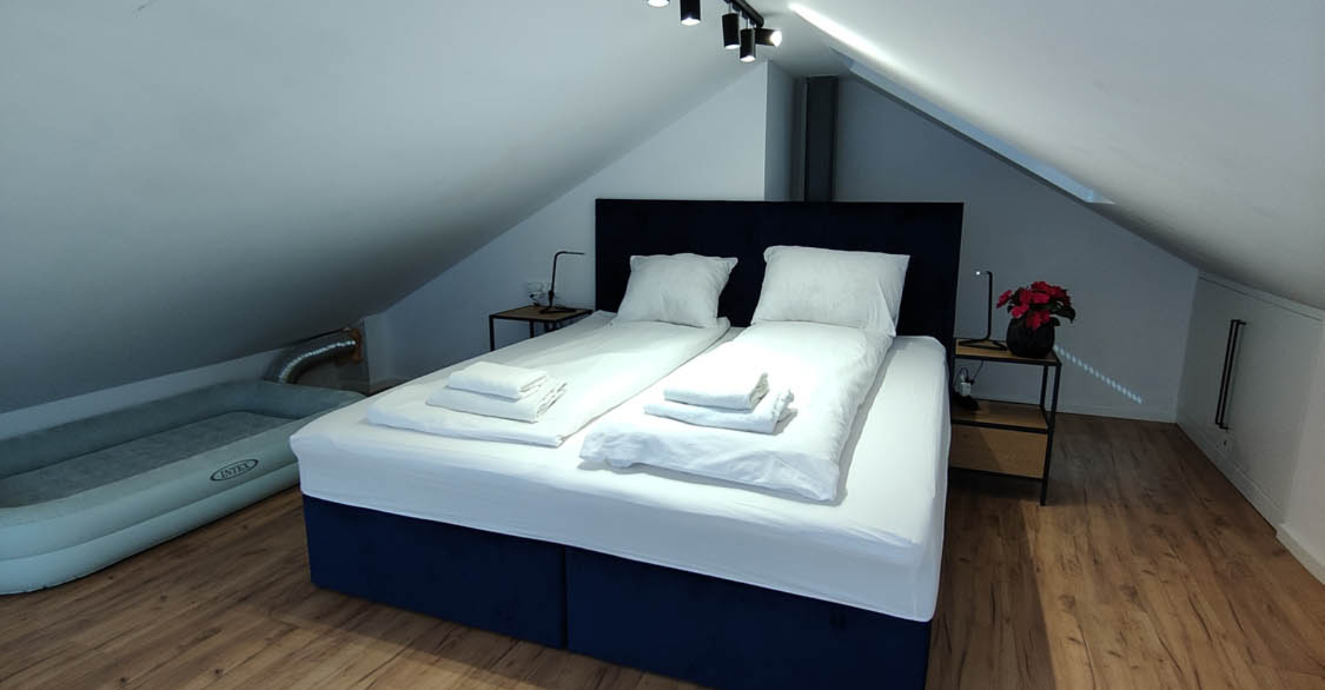 Sypialnia z antresolą część otwarta – Łóżko małżeńskie 140 cm x 200 cm, łóżka 140 cm x 200 cm,