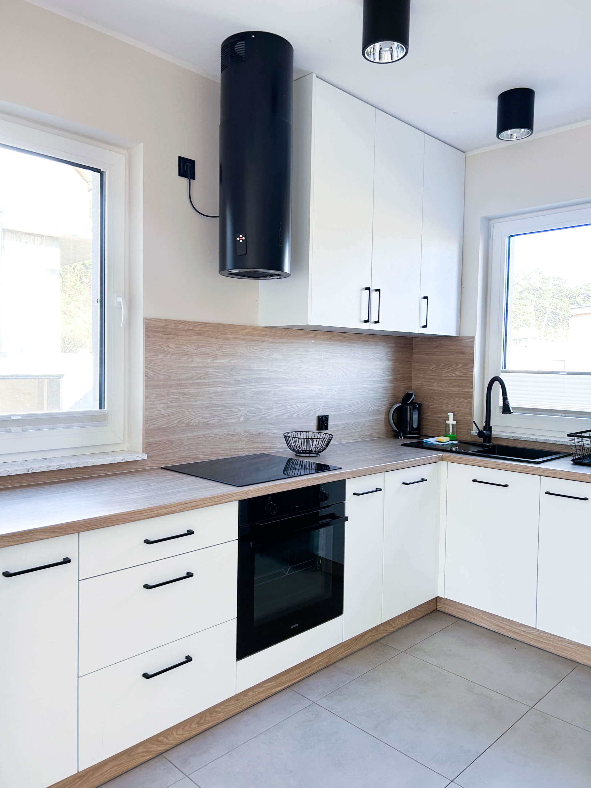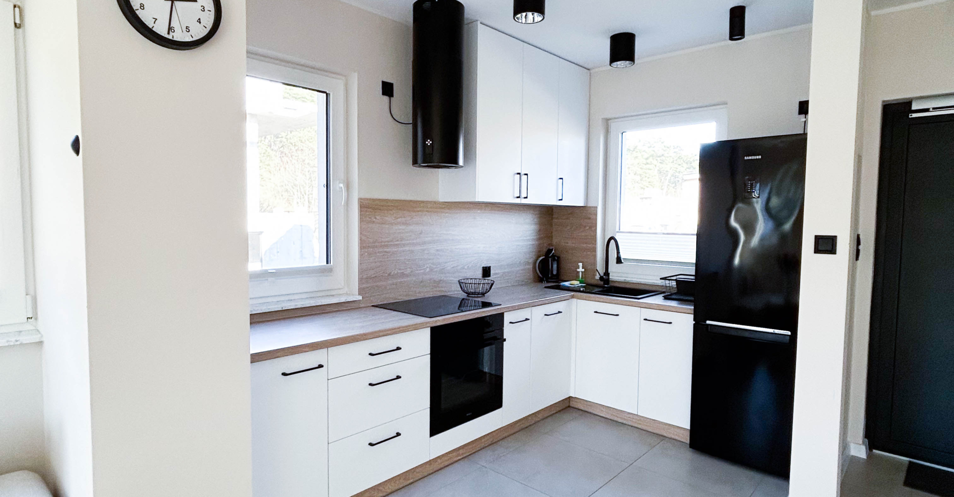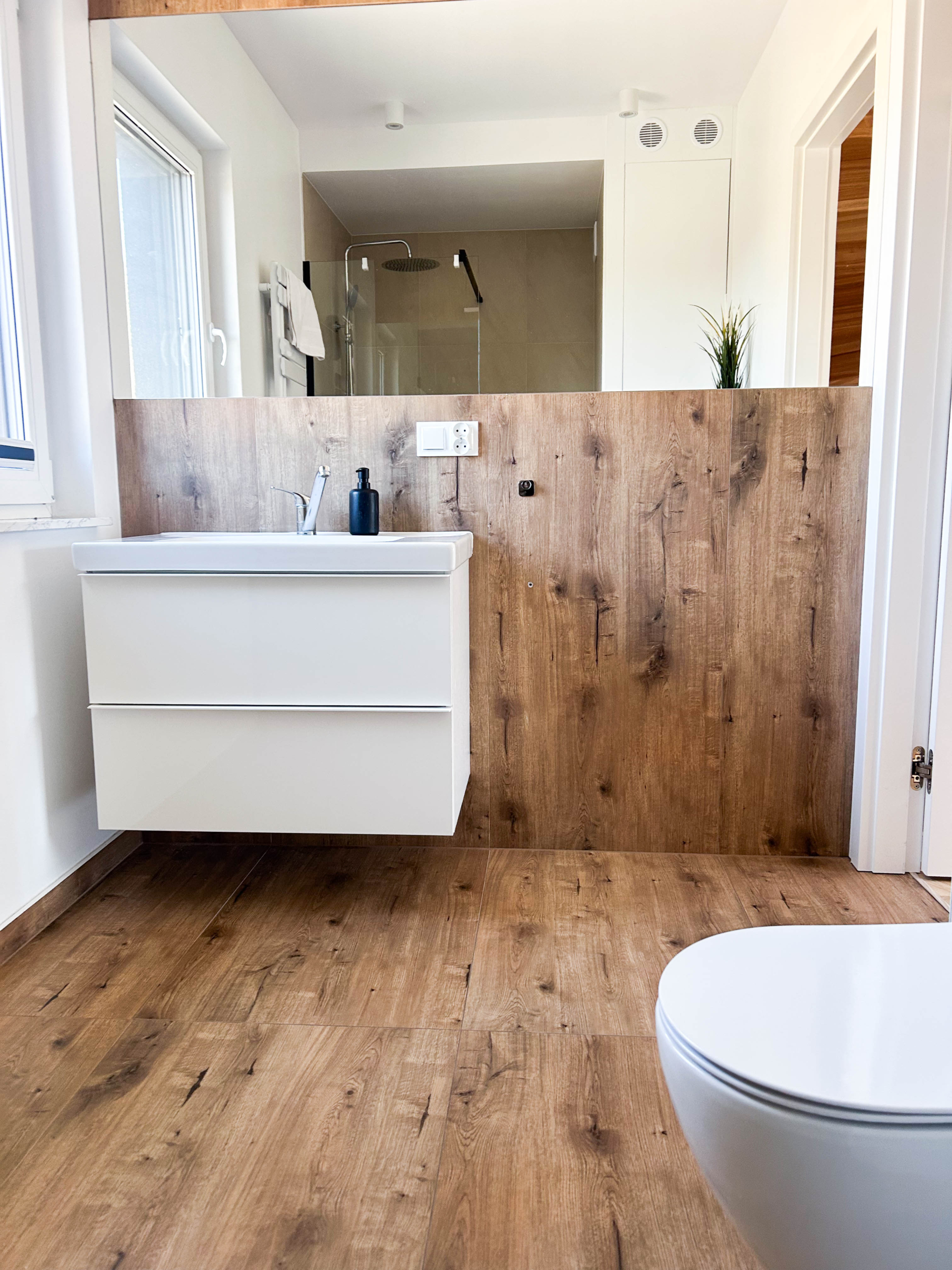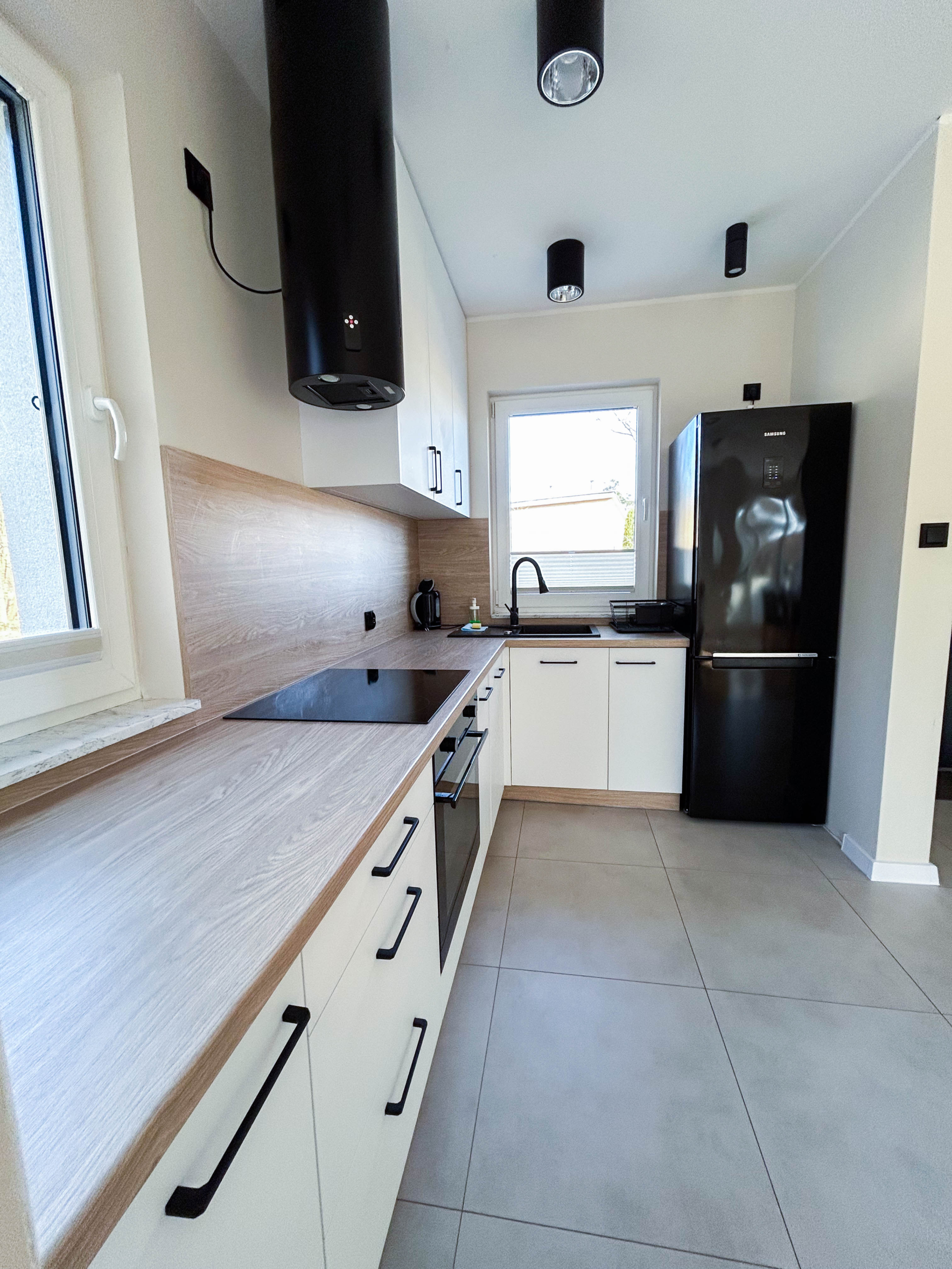 Parter – Salon z aneksem kuchennym, łazienka, jadalnia, duża szafa oraz wyjście na taras z miejscem do grillowania