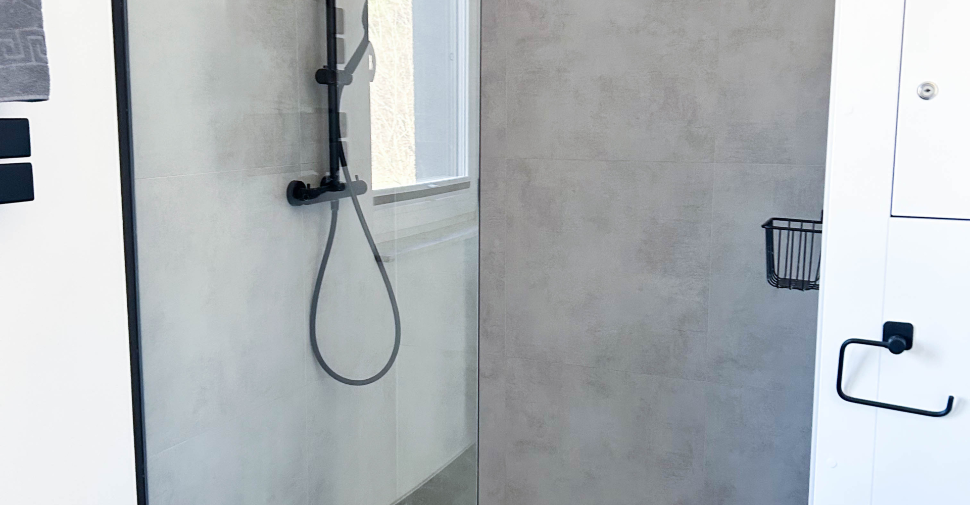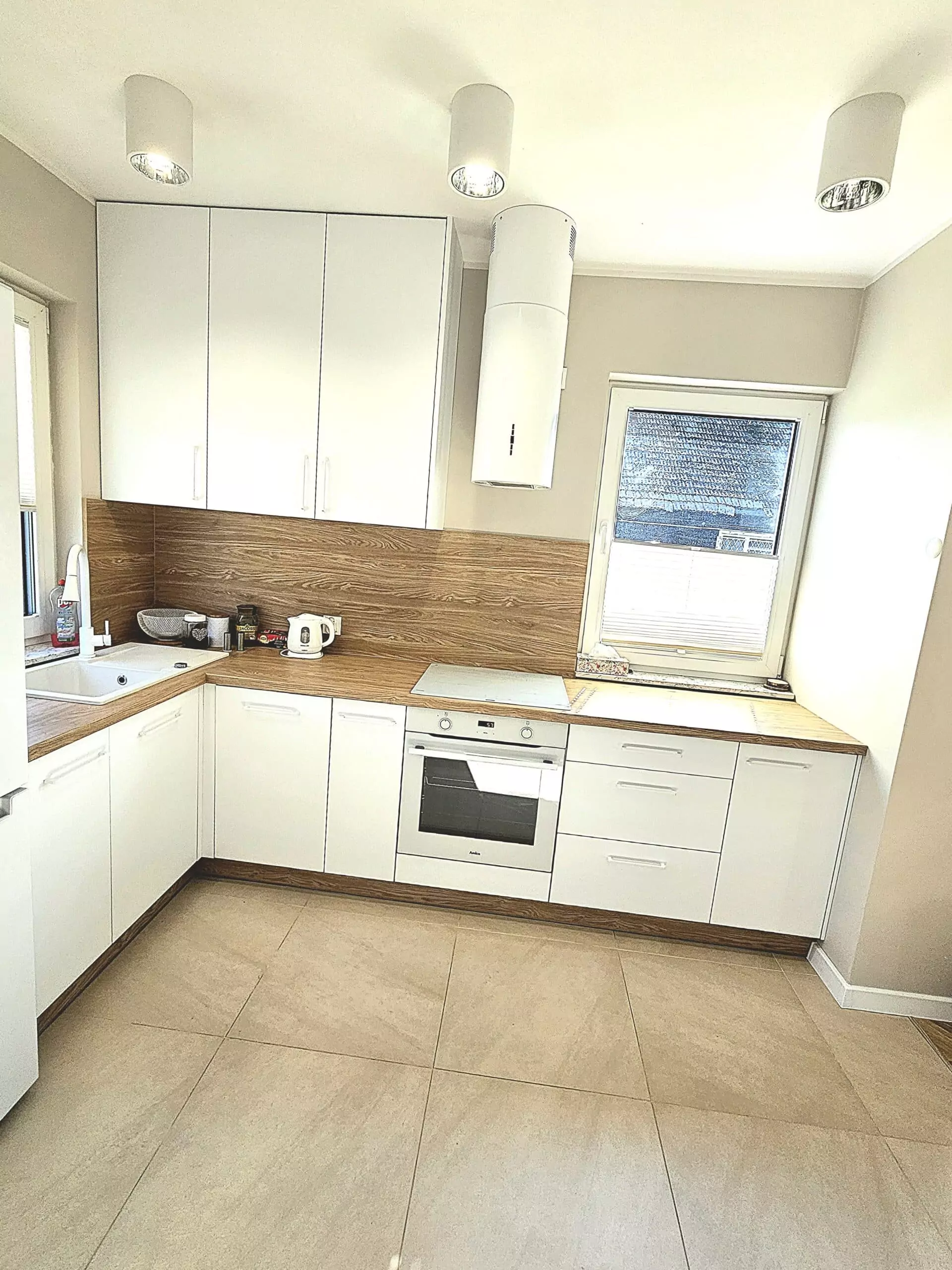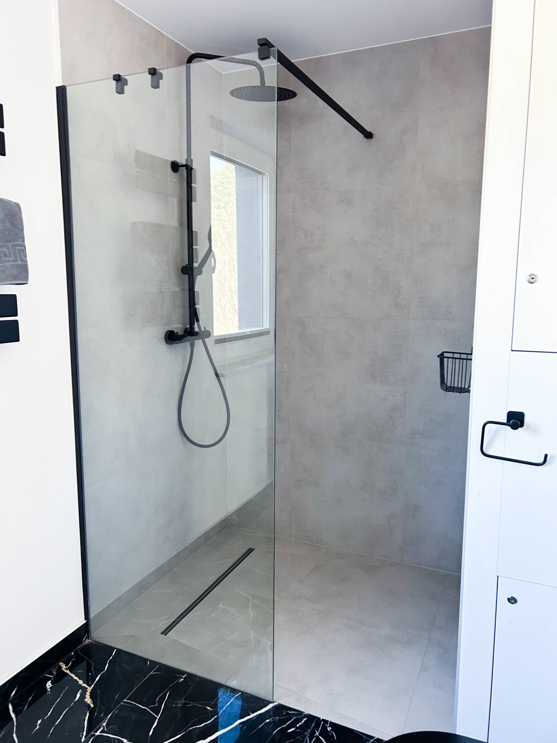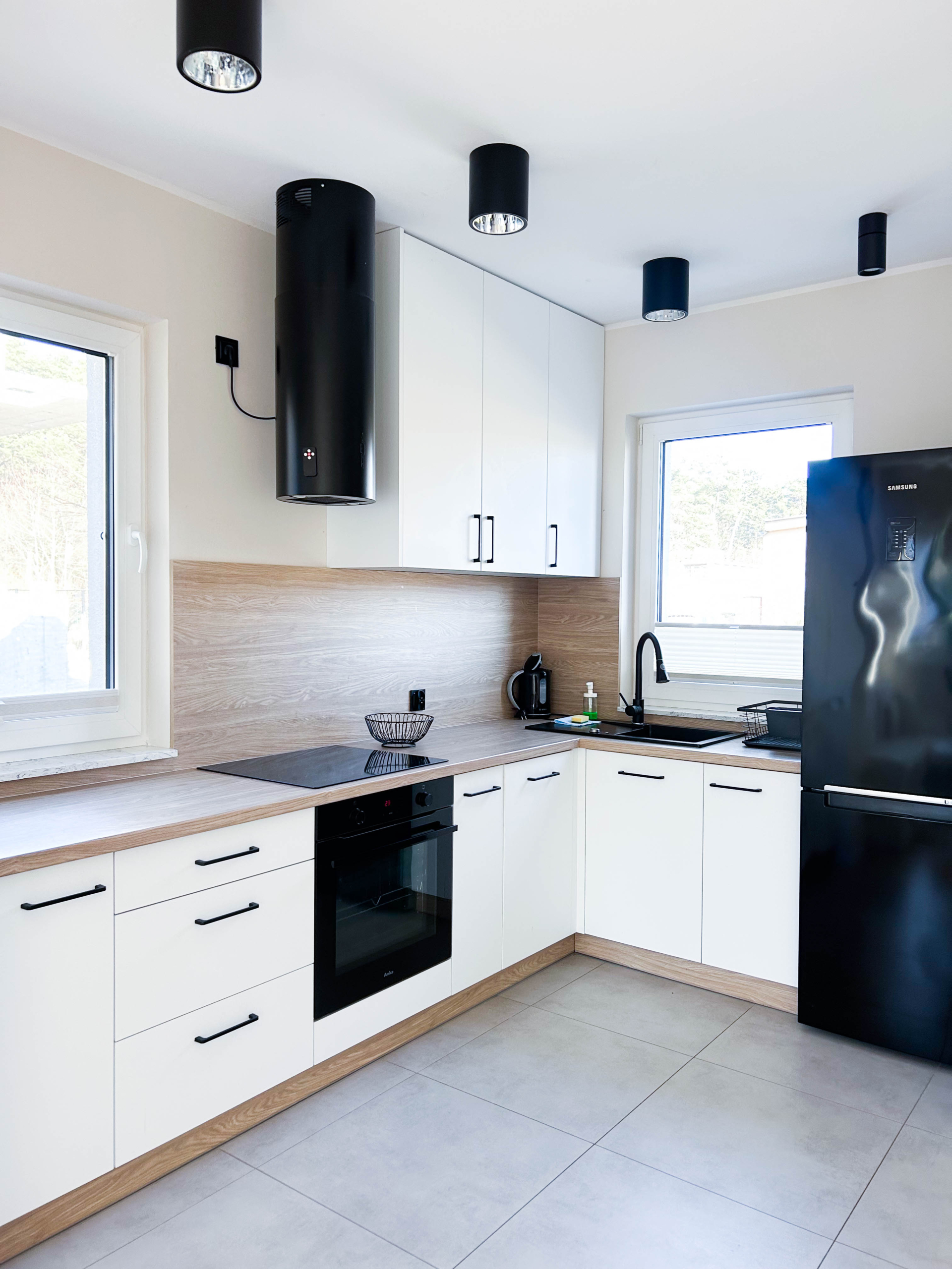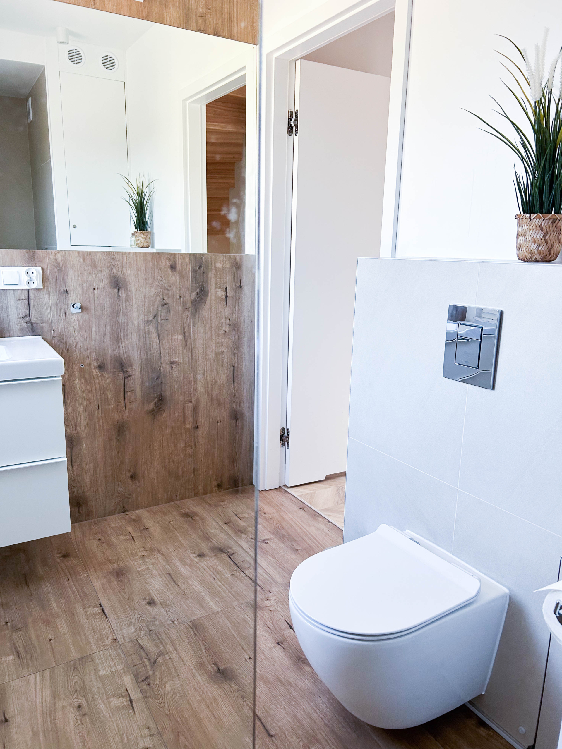 Parter – Salon z aneksem kuchennym, łazienka, jadalnia, duża szafa oraz wyjście na taras z miejscem do grillowania