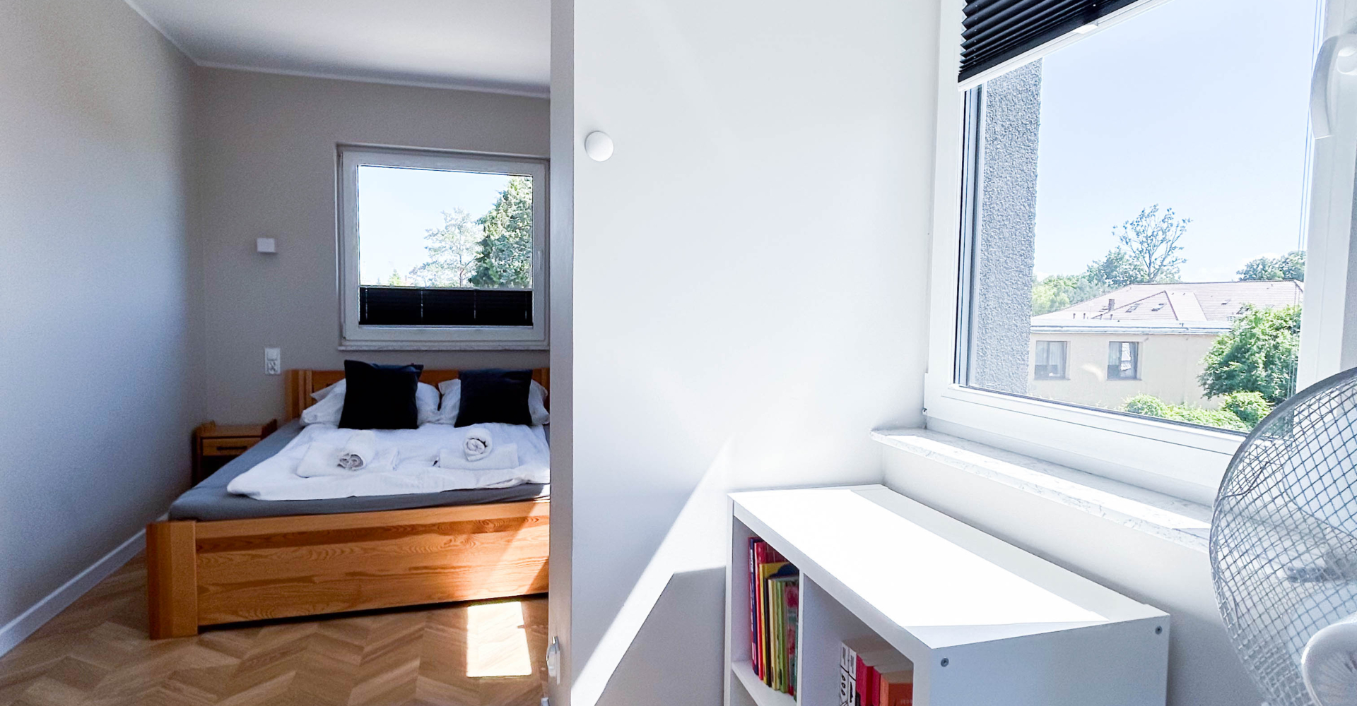Pierwsze piętro – 2 sypialnie z łóżkami małżeńskimi 160 cm x 200 cm
