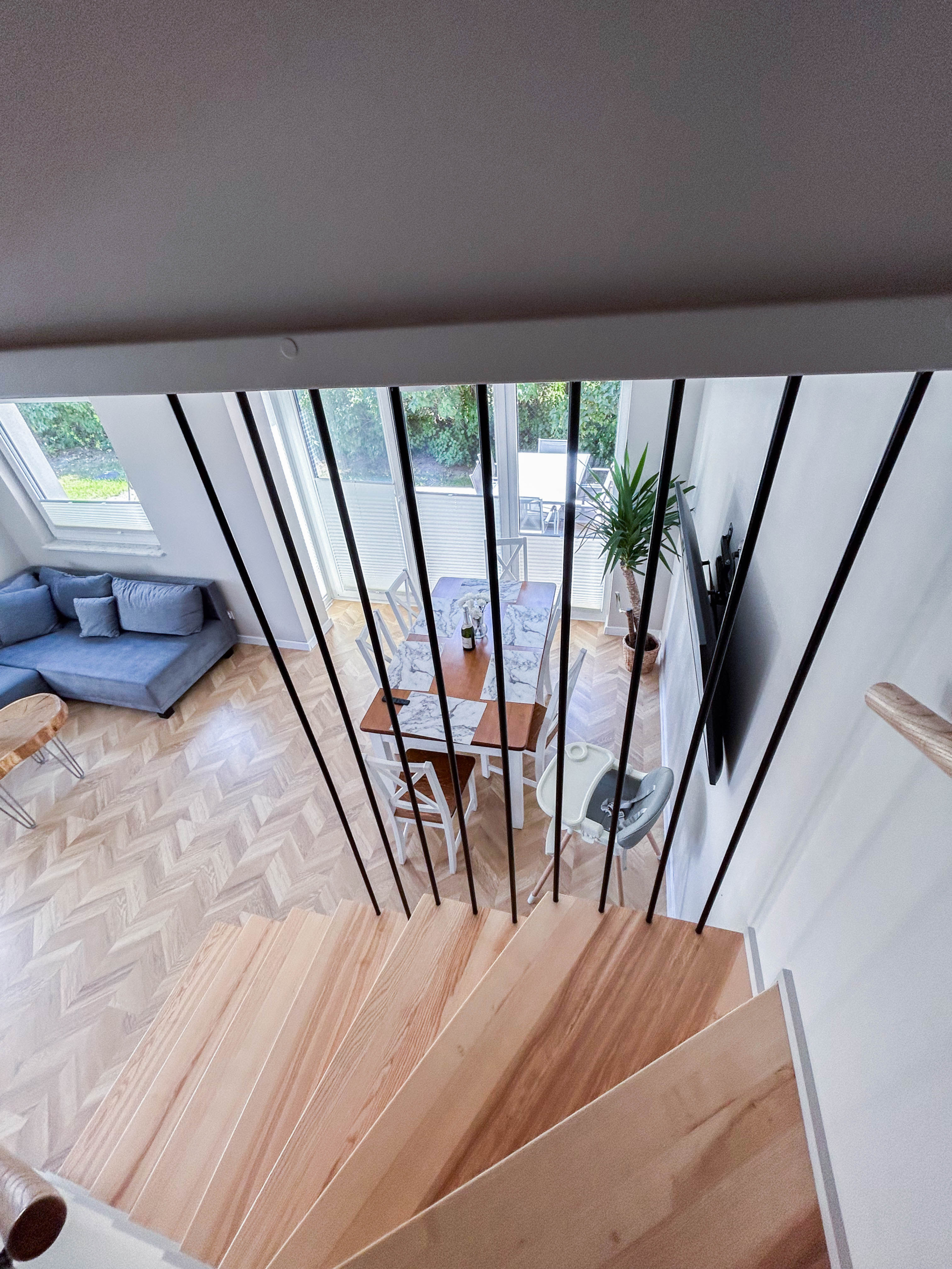 Każdy z apartamentów jest 2 piętrowy i składa się z: