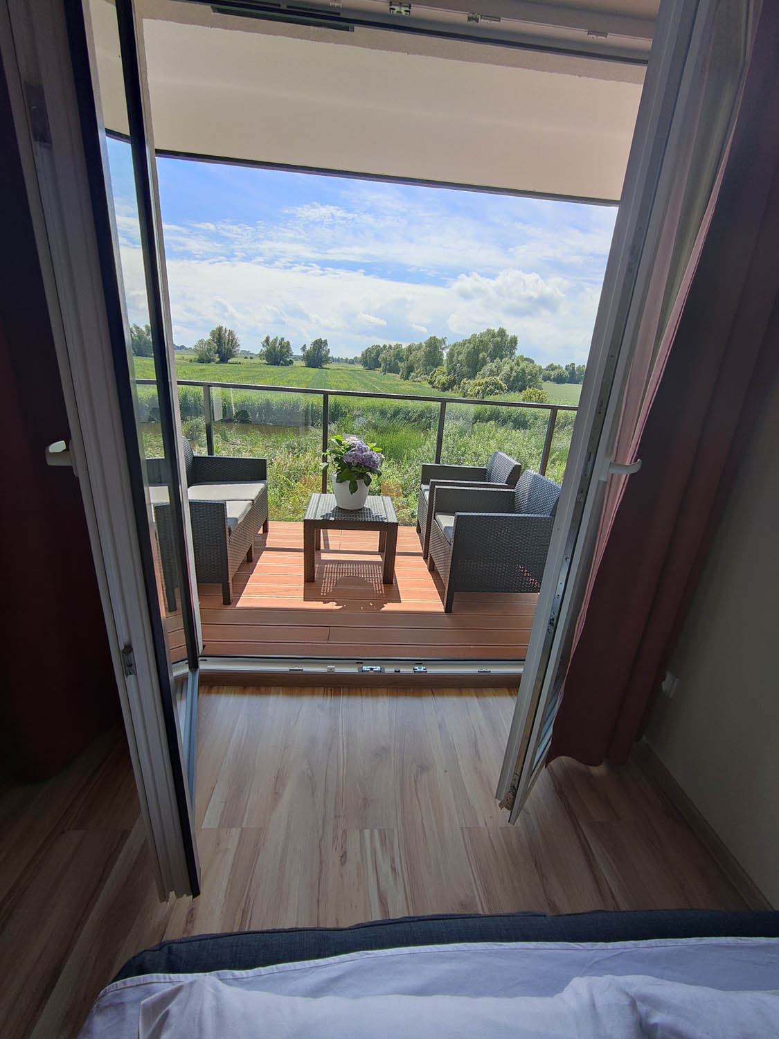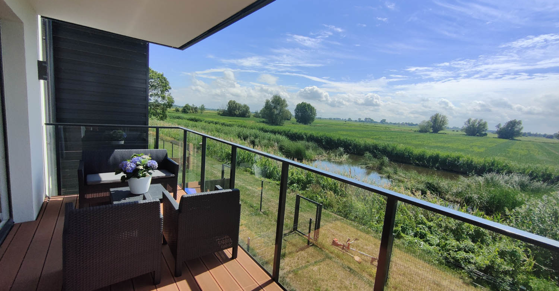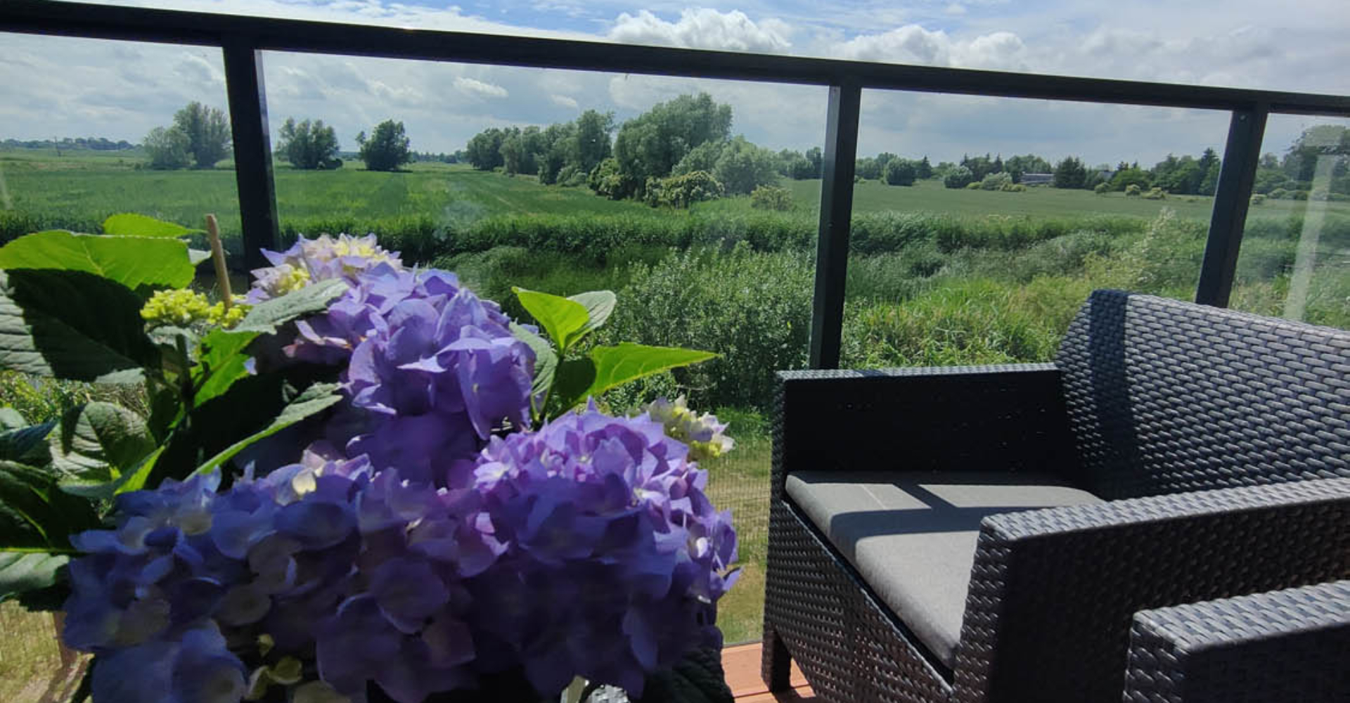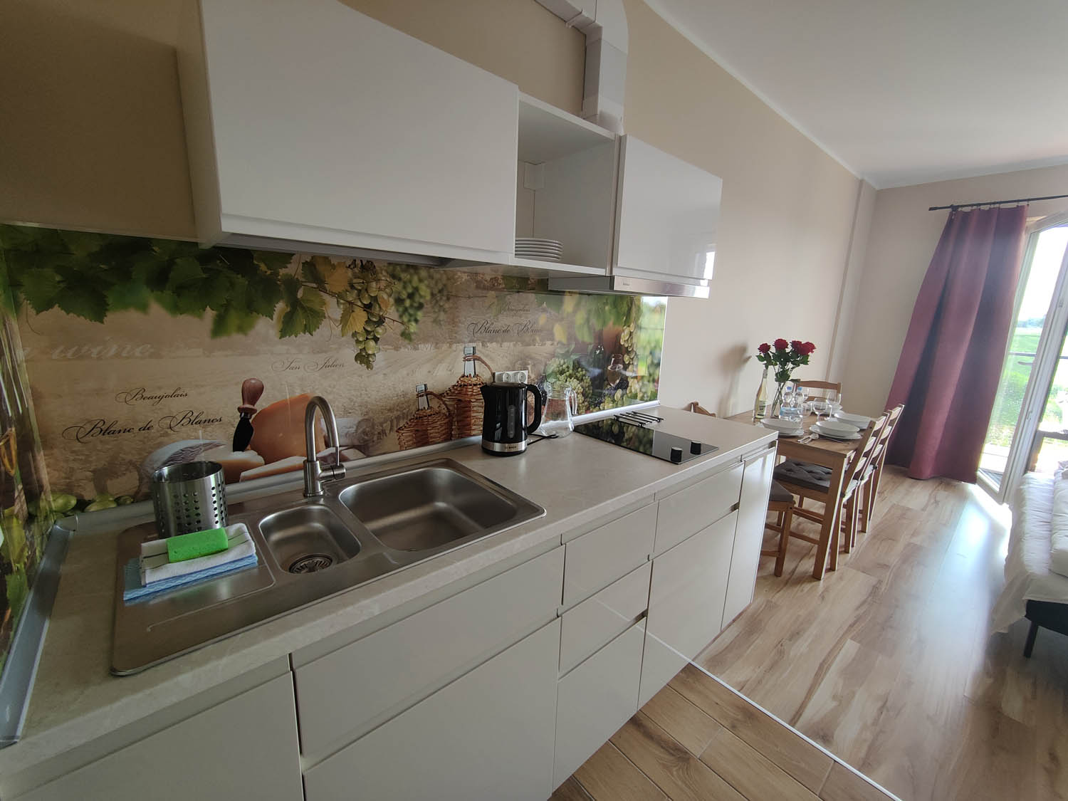 Sypialnia, salon z aneksem kuchennym, łazienka, balkon z pięknym widokiem na pola