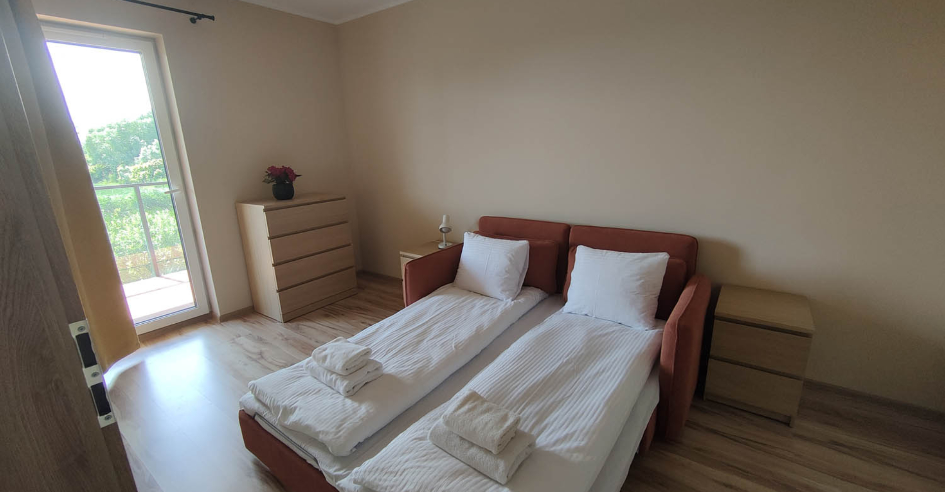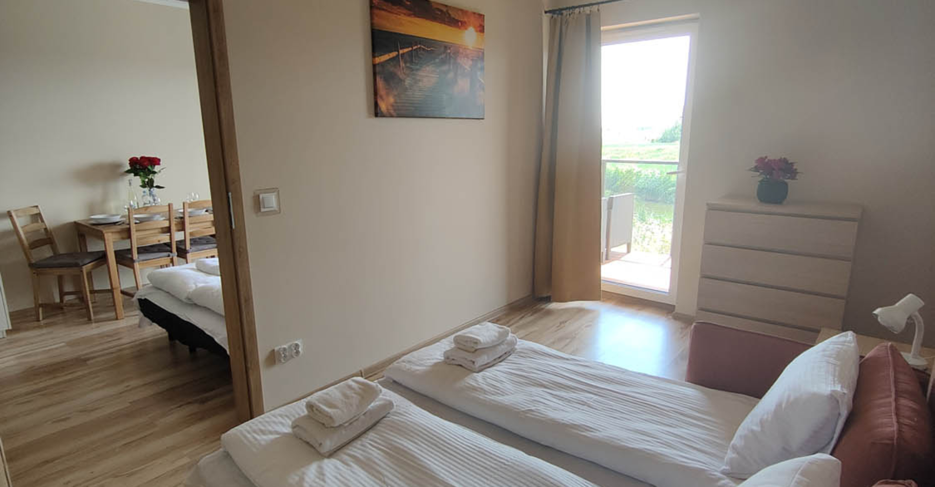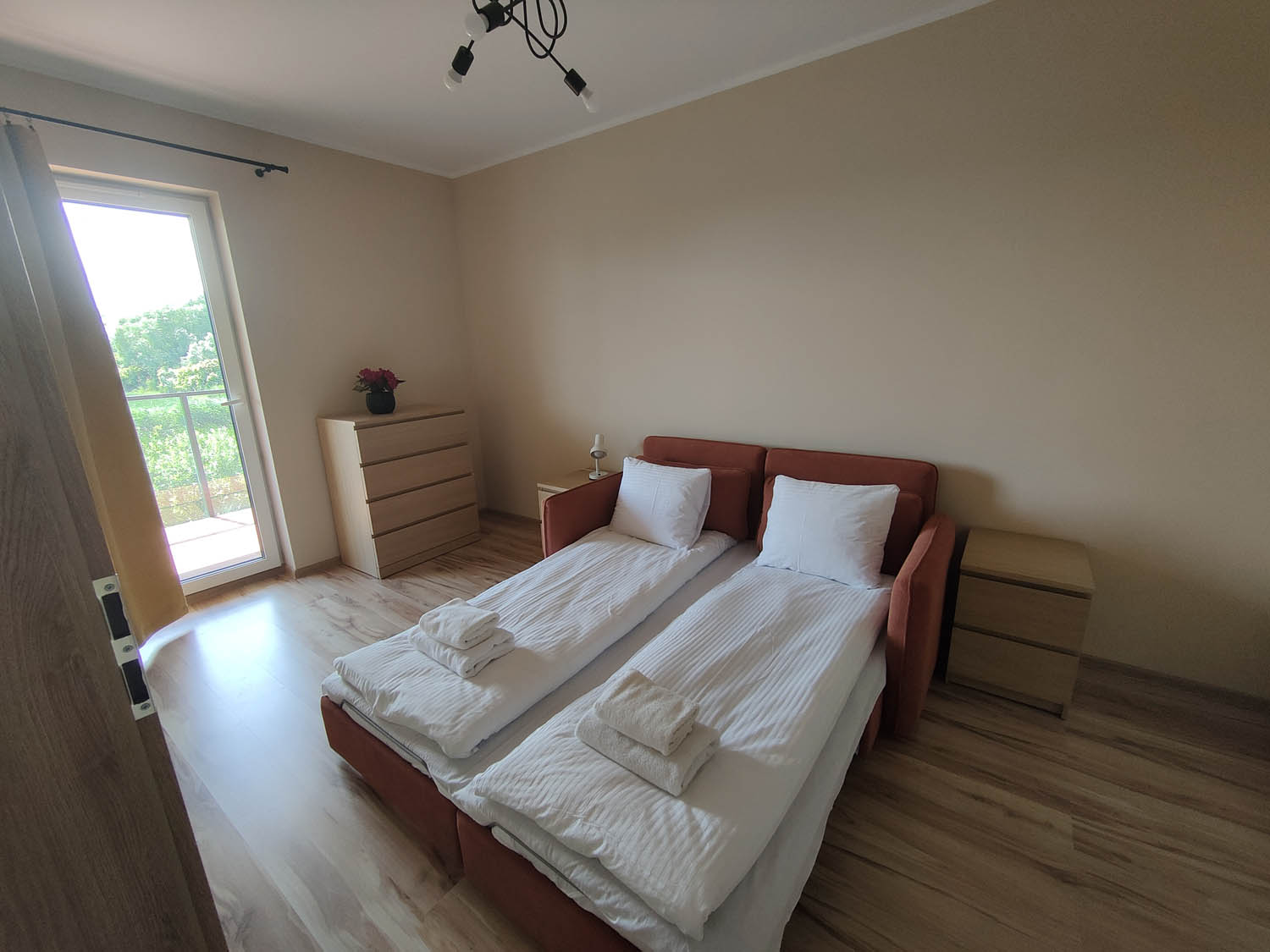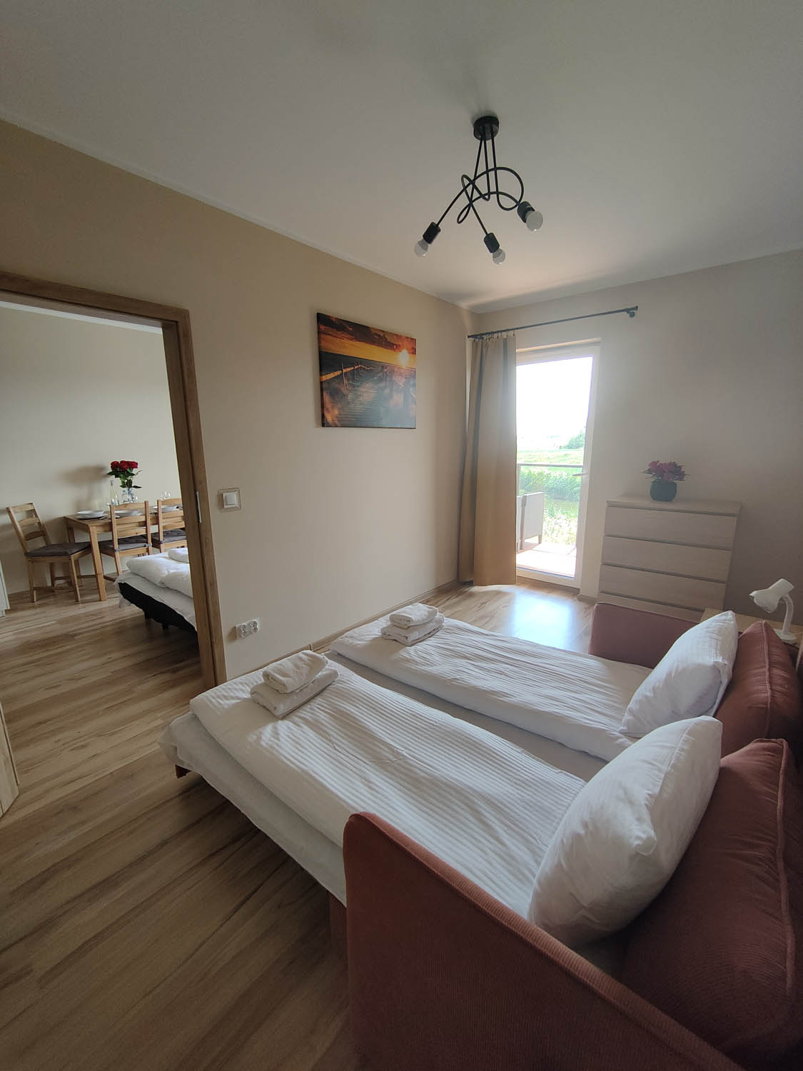 Apartament stanowi niezależne, czteroosobowe mieszkania w pełni wyposażone i umeblowane. Gwarantuje wyjątkowe poczucie intymności, swobody i niezależności. Pozwalają spędzić czas urlopu wyłącznie w towarzystwie ukochanej osoby bądź znajomych. Nowoczesne wykończenie zwiększają odczucie komfortu.