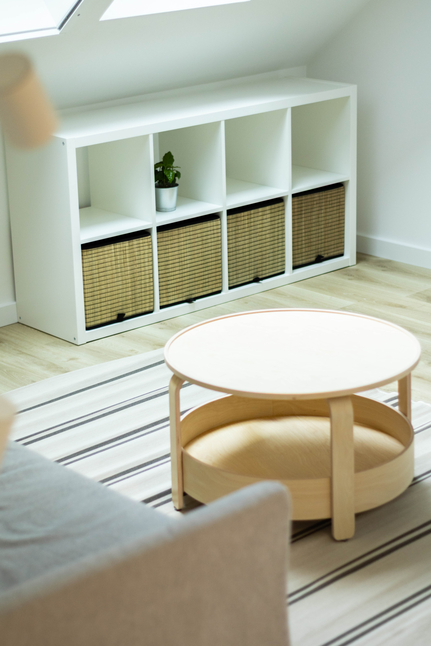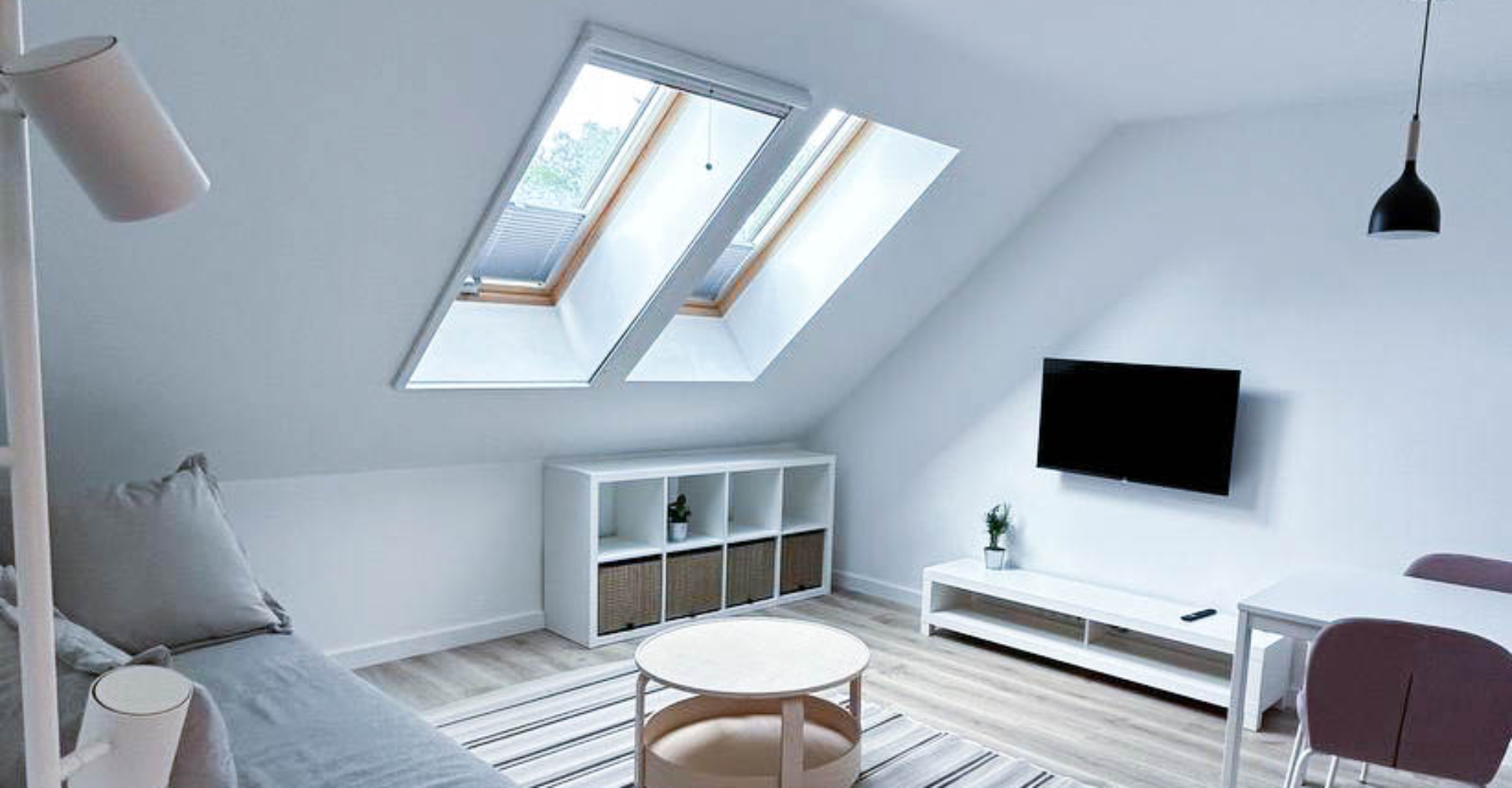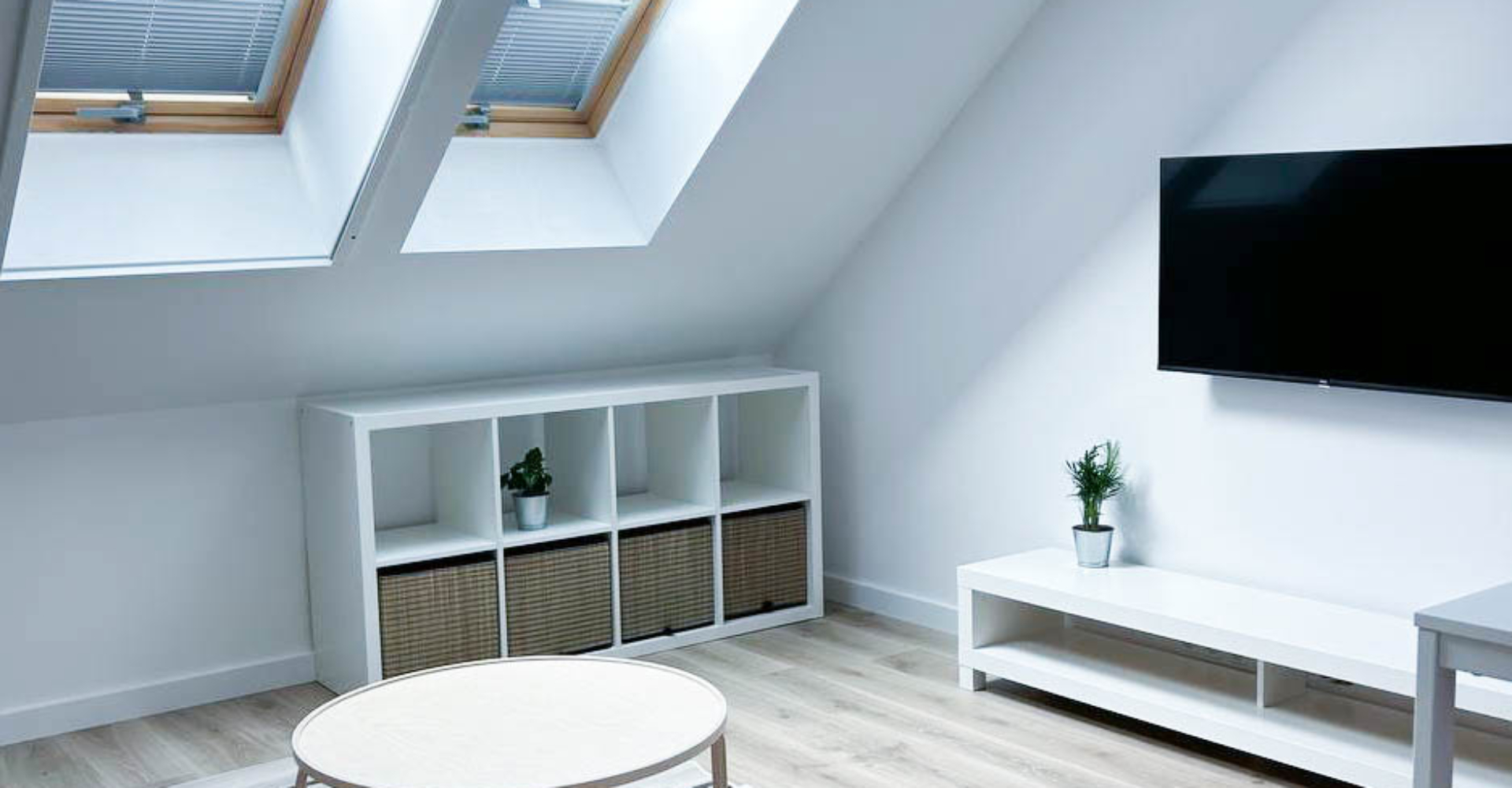 Salon – przestronny salon z rozkładaną sofą, doskonały do relaksu i jako dodatkowe miejsce do spania. Salon jest połączony z aneksem kuchennym, tworząc wygodną i funkcjonalną przestrzeń do przygotowywania posiłków.