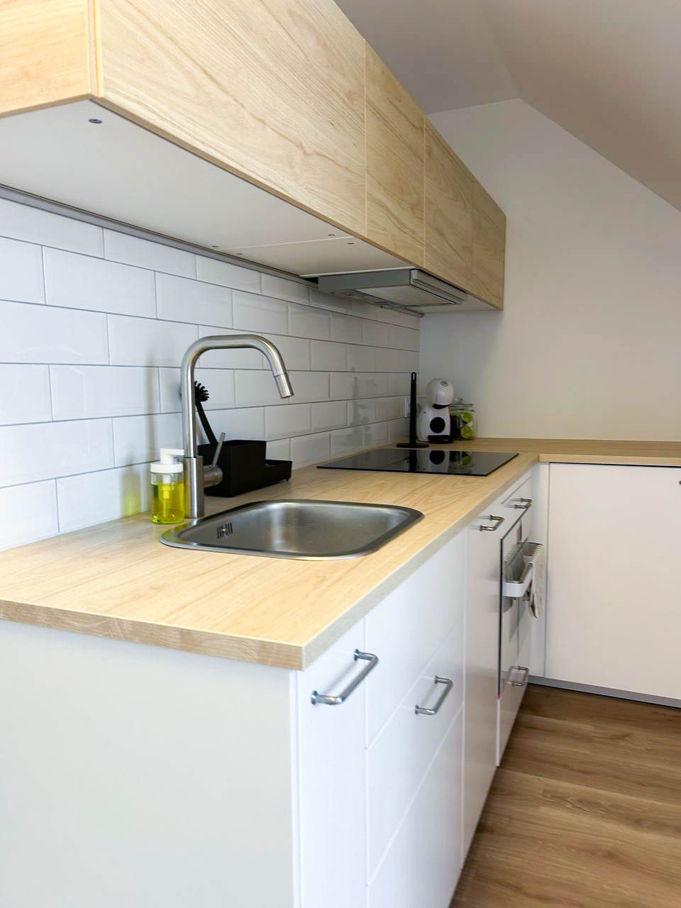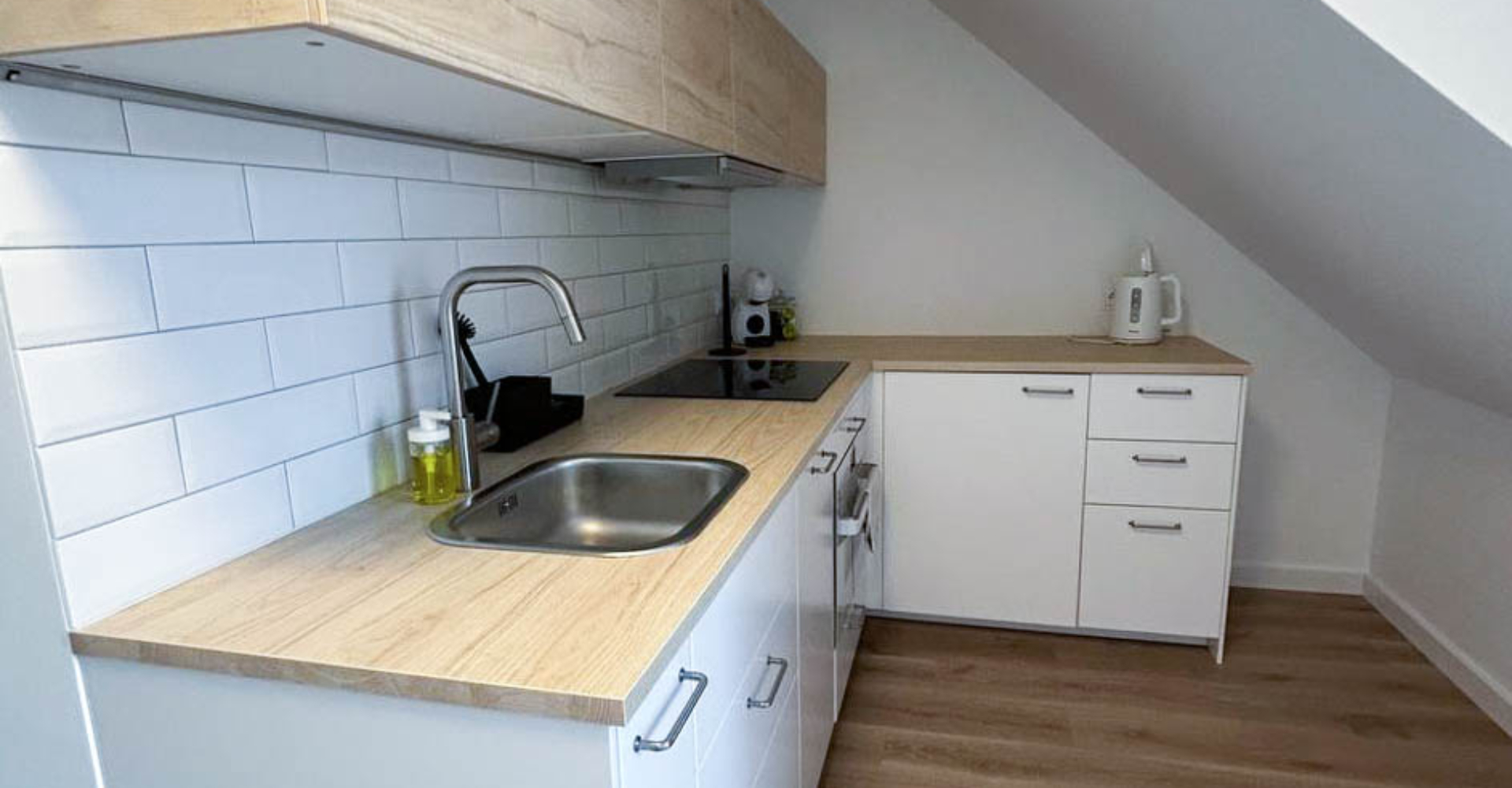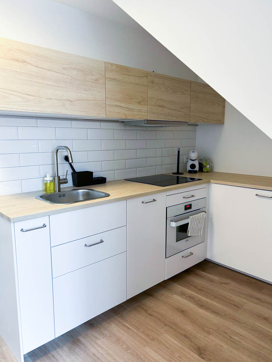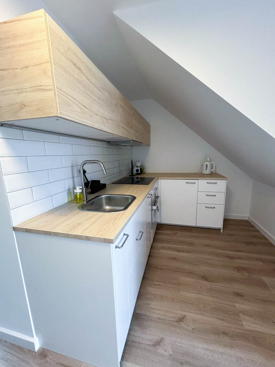 Aneks Kuchenny – w pełni wyposażony we wszystko, co potrzebne do gotowania i spożywania posiłków. Znajdziesz tu talerze, garnki, sztućce, płytę kuchenną, piekarnik, czajnik elektryczny oraz toster.