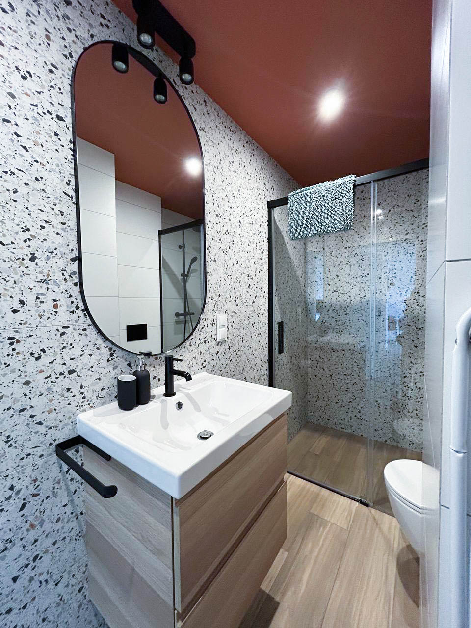 Łazienka – nowoczesna łazienka z prysznicem, wyposażona we wszystkie niezbędne udogodnienia, aby zapewnić pełen komfort.