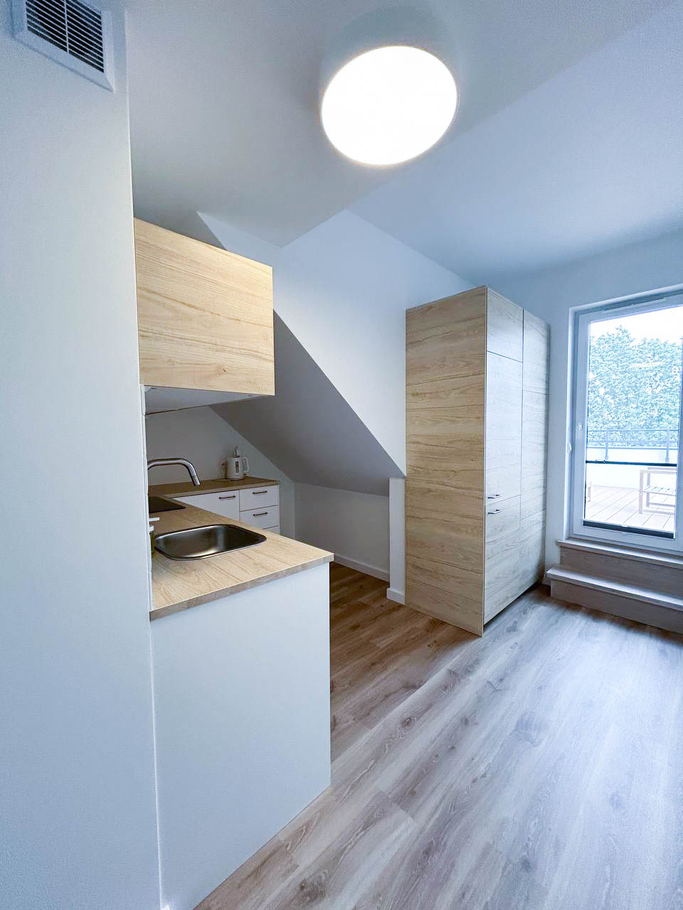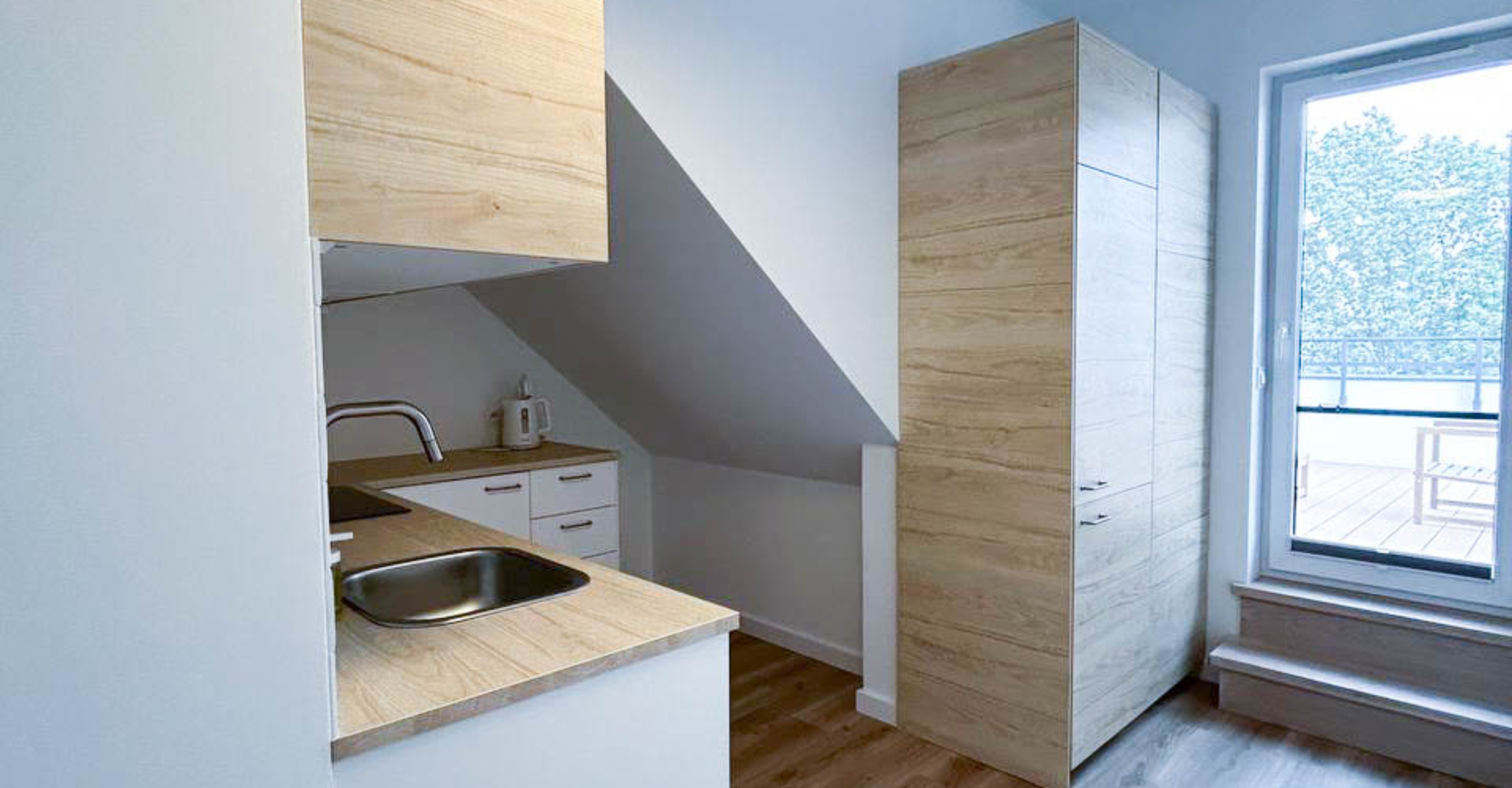 Balkonik – mały balkon, idealny na poranną kawę, relaks przy książce lub wieczorny wypoczynek na świeżym powietrzu.