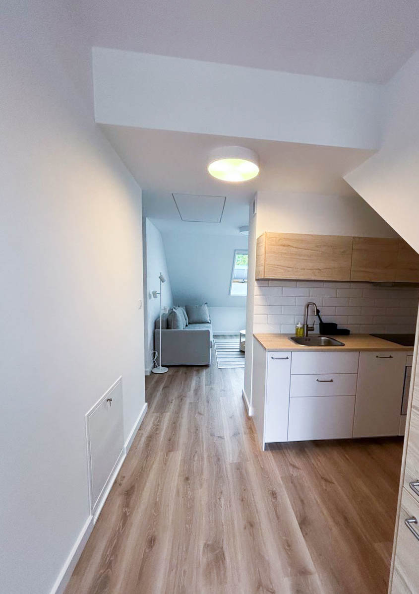Metraż – apartament ma powierzchnię 18 m², co zapewnia wygodną przestrzeń dla pary lub małej rodziny.